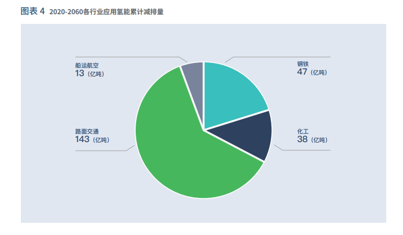 經(jīng)過分析零碳圖景下氫能在各行業(yè)的利用規(guī)模和能源結(jié)構(gòu),在2020-2060年間通過應(yīng)用氫能有望實(shí)現(xiàn)超過200億噸的累計(jì)減排量,其中交通行業(yè)累計(jì)減排量最大,約為156億噸,鋼鐵行業(yè)累計(jì)減排量約為47億噸,化工行業(yè)累計(jì)減排量約為38億噸,而可再生氫將在交通、鋼鐵、化工等領(lǐng)域成為主要的零碳原料。