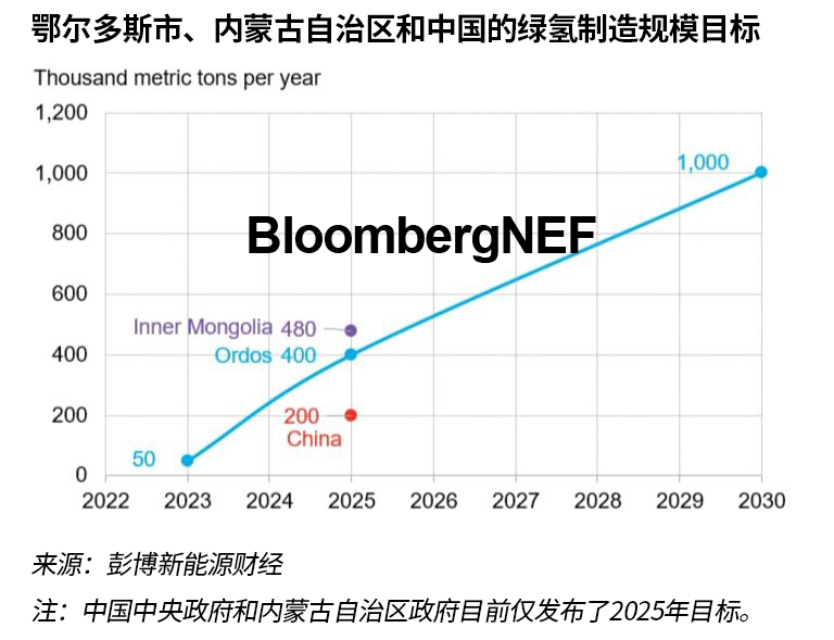 該100萬噸綠氫制造目標中,70%將用于合成甲醇、合成氨領(lǐng)域。彭博新能源財經(jīng)預(yù)期,如果鄂爾多斯實現(xiàn)全部甲醇產(chǎn)能以綠氫作原料合成,相應(yīng)的綠氫需求將達到200萬噸/年,是鄂爾多斯2030年目標的兩倍。