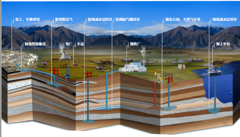 可分為地質(zhì)利用、化工利用、生物質(zhì)利用、地質(zhì)封存等多種途徑。目前,二氧化碳封存的主要方法主要是地質(zhì)封存,即將超臨界狀態(tài)(氣態(tài)及液態(tài)的混合體)的二氧化碳注入地質(zhì)結(jié)構(gòu)中,比如油田、氣田、咸水層、無法開采的煤礦等。