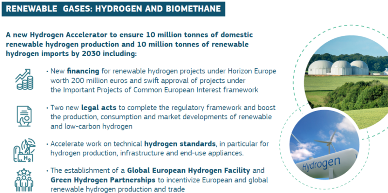 5月18日,為了擺脫對(duì)俄羅斯的化石燃料依賴(lài)并加速綠色能源轉(zhuǎn)型,歐盟委員會(huì)正式公布了 “REpowerEU” 能源轉(zhuǎn)型行動(dòng)方案。在氫能方面,歐盟計(jì)劃到2030年可再生氫產(chǎn)量達(dá)到1000萬(wàn)噸,再生氫進(jìn)口量達(dá)到1000萬(wàn)噸。