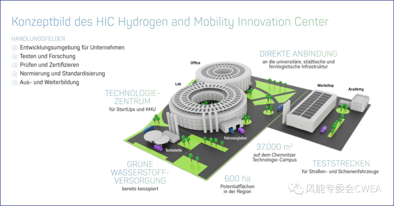 德國氫能和機(jī)動(dòng)創(chuàng)新中心設(shè)計(jì)圖。HIC的目標(biāo)是建立最先進(jìn)的汽車實(shí)驗(yàn)室、廣泛的氫認(rèn)證、燃料電池測(cè)試臺(tái)、培訓(xùn)中心和體驗(yàn)實(shí)驗(yàn)室。通過這種方式,氫的研究和轉(zhuǎn)移將提升到國際水平,并為全球市場(chǎng)成功創(chuàng)造先決條件。