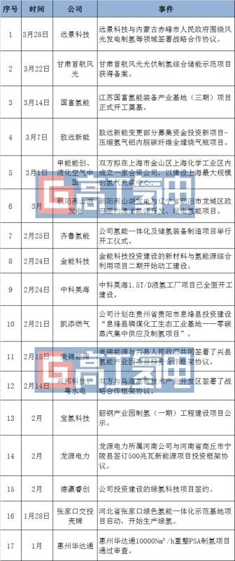 以下是國內(nèi)今年第一季度簽約/投建的氫能項目,其中大部分為制氫項目,參與企業(yè)有遠(yuǎn)景科技、甘肅首航風(fēng)光、申能能創(chuàng)、液化空氣中國、朝陽燕山湖發(fā)電、齊魯氫能、中科昊海、凱添燃?xì)?、美錦能源、興邦科技、粵水電、寶氫科技、龍源電力、德瀛睿創(chuàng)、張家口交投殼牌、惠州華達(dá)通等。以國富氫能、致遠(yuǎn)新能為代表的企業(yè)儲氫瓶項目也迎來新進(jìn)展。具體內(nèi)容如下: