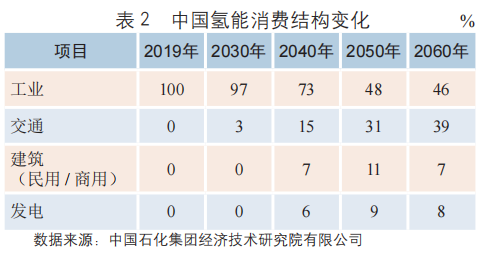從表2可知,從目前到2030年前碳達(dá)峰,工業(yè)灰氫消費(fèi)達(dá)峰下行,交通用氫占比突破3%。從2030年碳達(dá)峰到2060年碳中和時期,同樣可分為三個階段: