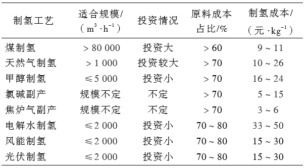 表2 不同制氫工藝經(jīng)濟(jì)性匯總