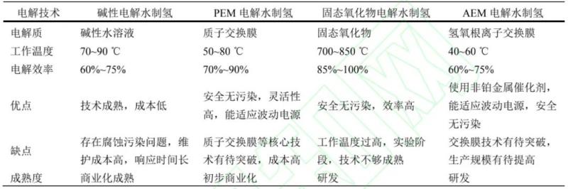 表1. 四種電解水制氫技術(shù)對(duì)比