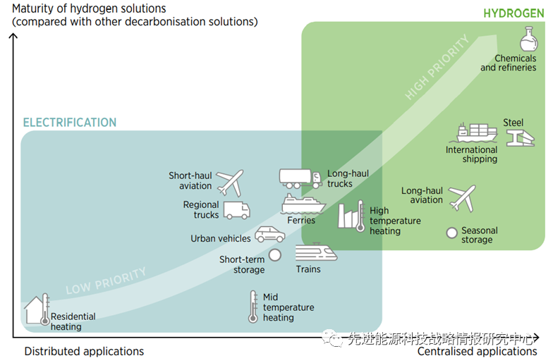 ?全球努力的重點應該是提供最直接的優(yōu)勢和部署可實現(xiàn)規(guī)模經(jīng)濟的氫能應用,特別是在未來幾年。優(yōu)先考慮氫能是最佳(也許是唯一)替代品的高需求應用,更有可能具有成本效益,并且不易受到新興市場風險的影響。一個可能的例子是支持在已經(jīng)使用氫能的工業(yè)應用中加速向綠氫轉(zhuǎn)變,如煉油、氨和甲醇的生產(chǎn)。