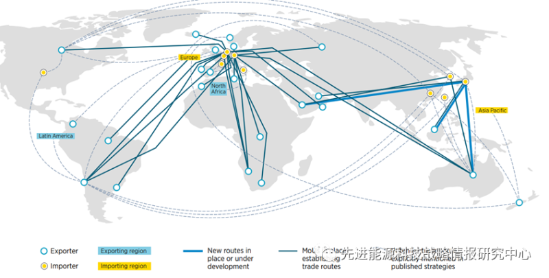 圖2不斷擴大的氫能貿(mào)易路線、計劃和協(xié)議網(wǎng)絡