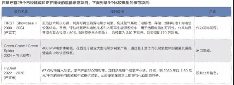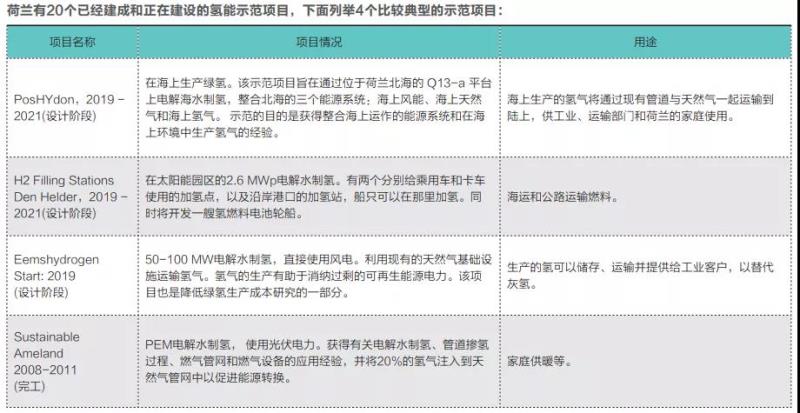 限于篇幅,本文僅列舉了歐洲各地區(qū)氫能示范先發(fā)國家部分有代表性的氫能示范項目,類型完全重復的示范項目不贅述。