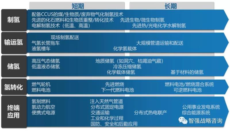 我國對氫能的研發(fā)起步較晚,2016年發(fā)布《能源技術(shù)革命創(chuàng)新行動計劃(2016-2030年)》提出了氫能與燃料電池技術(shù)領(lǐng)域的近、中、長期發(fā)展目標和路線圖。科技部先后啟動“新能源汽車”試點專項、“可再生能源與氫能技術(shù)”重點專項、“氫能技術(shù)”重點專項等重大研發(fā)項目,支持氫能關(guān)鍵技術(shù)研發(fā)和試點示范。然而,我國缺乏專門針對氫能的頂層規(guī)劃,在氫能關(guān)鍵技術(shù)、工藝和材料上均存在短板,氫能使用成本仍然過高,限制了其規(guī)模化發(fā)展。具體建議包括: