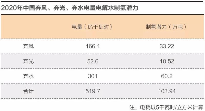 從數(shù)據(jù)上看,中國可再生能源制氫的潛力無疑是巨大的。2020年全國棄風(fēng)電量166.1億千瓦時,棄光電量52.6億千瓦時,主要河流棄水電量301億千瓦時。
