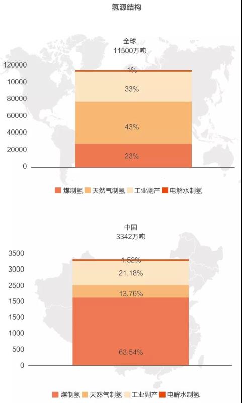 目前,全球氫能產(chǎn)量中,有23%是煤制氫,43%是天然氣制氫,33%是工業(yè)副產(chǎn)品制氫。這些大多屬于灰氫,部分屬于藍氫。而中國更是有超過60%的氫來自于完全屬于灰氫的煤制氫。