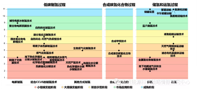 五、制氫、儲氫、運(yùn)氫及氫能應(yīng)用全價(jià)值鏈技術(shù)成熟度情況