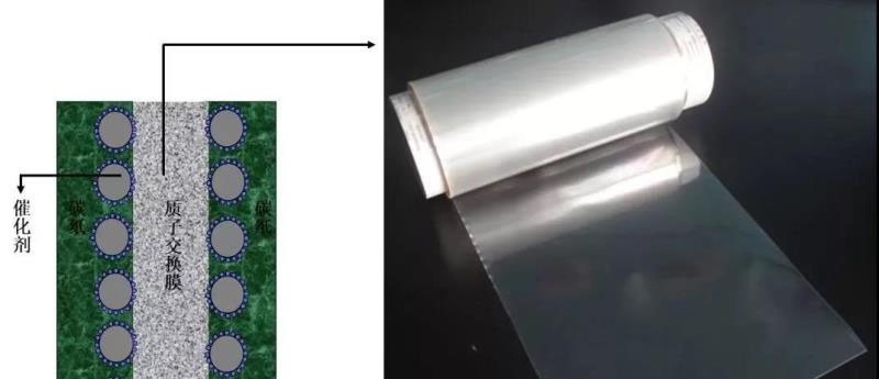 質(zhì)子交換膜是質(zhì)子交換膜燃料電池(PEMFC)的核心元件,以全氟磺酸膜為主,目前國產(chǎn)化進(jìn)程提速。質(zhì)子交換膜目前主流趨勢是全氟磺酸增強(qiáng)型復(fù)合膜,質(zhì)子交換膜逐漸趨于薄型化,由幾十微米降低到十幾微米,降低質(zhì)子傳遞的歐姆極化,以達(dá)到更高的性能。國外企業(yè)有美國Gore公司,科慕(以前的杜邦)、3M、日本的旭化成等,國內(nèi)能夠批量化供應(yīng)只有山東東岳一家,山東東岳的膜已經(jīng)進(jìn)入了奔馳的供應(yīng)鏈體系。