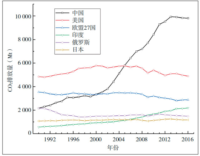 自上世紀以來,全球CO2排放逐年提高,溫室效應日漸加劇。圖1示出了一些典型國家和地區(qū)的CO2排放情況,顯然我國CO2排放量在近20年內(nèi)迅速增長,2006年超過美國成為世界第一大排放國。尋求低碳類型能源,對緩解全球變暖、保障經(jīng)濟發(fā)展,有著重要意義。