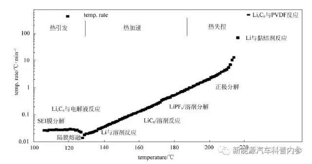 上圖體現(xiàn)的是性能正常的電芯,熱量積累引發(fā)熱失控的過程。撞擊,穿刺等機(jī)械損傷造成的熱失控,不在這張圖的描述范圍。