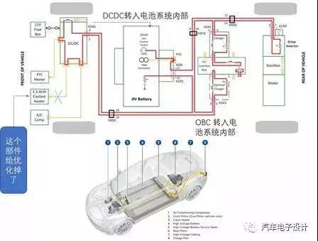 如下圖所示,我們真的可以看到集成的好處,單就以HVIL的回路來(lái)看,從MY2012的Model的經(jīng)典系統(tǒng)回路來(lái)看,從原有的DCDC和前端配電的功能被集成到電池包里面,冷卻液的加熱器給一個(gè)集成的熱管理和電機(jī)廢熱回收給代替掉。
