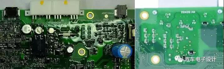 P3(SHUNT INT):與電流分流器相連接 P4(HV SENSE) :高壓采樣連接器,采集高壓回路并分壓到上方高壓處理電路,主要包含三個(gè)接觸器(主正、主負(fù)和快充雙胞胎接觸器),這里的高壓采集回路名義上為3路輸入,實(shí)際上診斷主正和主負(fù)接觸器會(huì)有交叉;