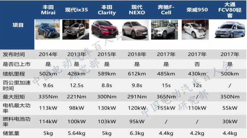* 圖表8 各車(chē)企燃料電池車(chē)型