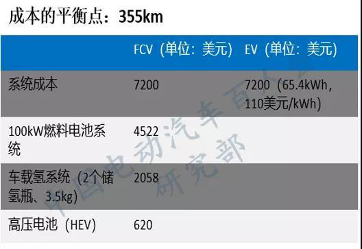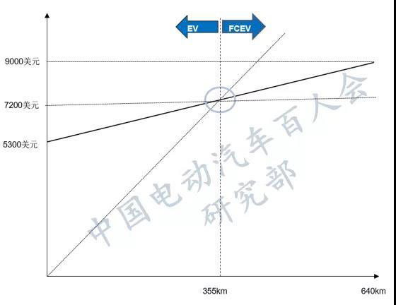 統(tǒng)計(jì)口徑2:根據(jù)日本新能源產(chǎn)業(yè)技術(shù)綜合開(kāi)發(fā)機(jī)構(gòu)(NEDO)和美國(guó)能源部(DOE)的測(cè)算,在355公里里程范圍內(nèi),BEV成本較為明顯,續(xù)駛里程達(dá)到355公里以上,F(xiàn)CV具有明顯的成本優(yōu)勢(shì),在續(xù)駛里程為355公里時(shí)燃料電池系統(tǒng)及動(dòng)力電池系統(tǒng)成本達(dá)到平衡點(diǎn)。