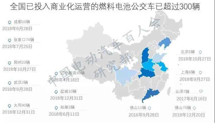 近年來(lái),在國(guó)家和地方政策的推動(dòng)下,各地紛紛開(kāi)展燃料電池公交、物流車(chē)等領(lǐng)域的示范項(xiàng)目,燃料電池汽車(chē)得到廣泛推廣和應(yīng)用。據(jù)公開(kāi)新聞報(bào)道,2018年共有13座城市展開(kāi)燃料電池汽車(chē)示范應(yīng)用,涉及公交運(yùn)營(yíng)車(chē)輛達(dá)到300余輛。