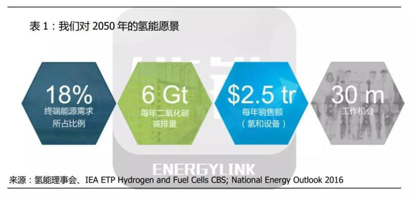 國際氫能委員會(Hydrogen Council)預計,到2050年,氫能將創(chuàng)造3000萬個工作崗位,減少60億噸二氧化碳排放,創(chuàng)造2.5萬億美元產(chǎn)值,在全球能源中所占比重有望達到18%。