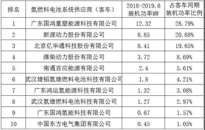 表6 2018-2019.6燃料電池客車裝機(jī)功率