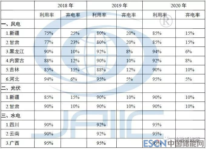 我國(guó)可再生能源十分豐富,且可再生能源的開發(fā)力度居世界前列,新能源新增及累計(jì)裝機(jī)容量均排名世界第一。但新能源電力發(fā)電量受季節(jié)及氣候影響波動(dòng)較大,無(wú)法滿足用電側(cè)負(fù)荷的穩(wěn)定性,因而棄風(fēng)、棄光、棄水現(xiàn)象十分嚴(yán)重。2018年全國(guó)平均棄風(fēng)率為7%,、棄光率為3%、棄水率為5%,棄風(fēng)率最高的地區(qū)棄風(fēng)率達(dá)23%,棄光較嚴(yán)重的地區(qū)棄光率達(dá)16%。清潔電力的消納形勢(shì)依然很嚴(yán)峻。根據(jù)通知提出的目標(biāo),2020年力爭(zhēng)棄風(fēng)率控制在5%左右,棄光率、棄水率控制在5%以內(nèi)。清潔能源消納主要目標(biāo)見(jiàn)下表。