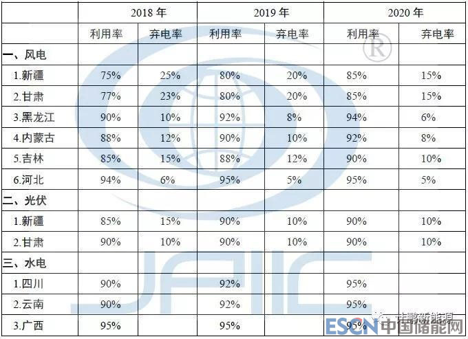 我國可再生能源十分豐富,且可再生能源的開發(fā)力度居世界前列,新能源新增及累計裝機容量均排名世界第一。但新能源電力發(fā)電量受季節(jié)及氣候影響波動較大,無法滿足用電側(cè)負荷的穩(wěn)定性,因而棄風(fēng)、棄光、棄水現(xiàn)象十分嚴重。2018年全國平均棄風(fēng)率為7%,、棄光率為3%、棄水率為5%,棄風(fēng)率最高的地區(qū)棄風(fēng)率達23%,棄光較嚴重的地區(qū)棄光率達16%。清潔電力的消納形勢依然很嚴峻。根據(jù)通知提出的目標(biāo),2020年力爭棄風(fēng)率控制在5%左右,棄光率、棄水率控制在5%以內(nèi)。清潔能源消納主要目標(biāo)見下表。