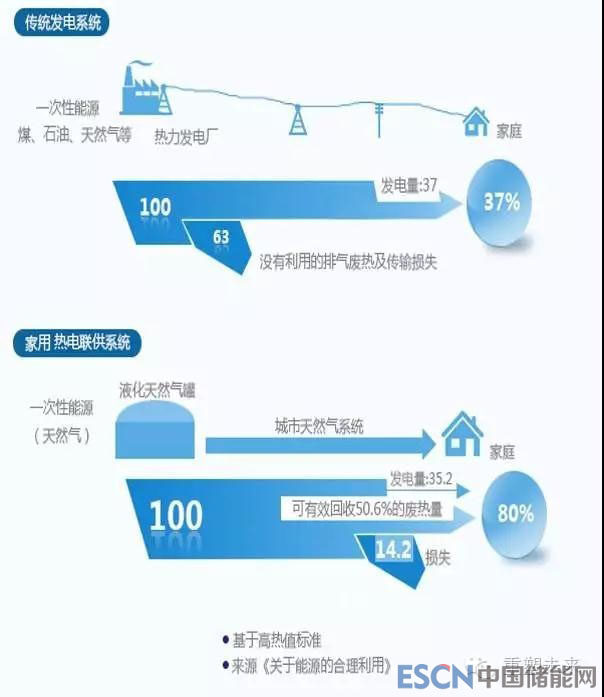 燃料電池雖然名稱中有電池兩字,但是其實它更像一個能源轉(zhuǎn)換器,可以將一次能源直接轉(zhuǎn)化為電能和熱能,且設(shè)備的功率可以在一個很大的范圍內(nèi)波動。這種特性讓其能夠輕易地實現(xiàn)家用化,且綜合能效要高于集中式地能源供應(yīng)方案。