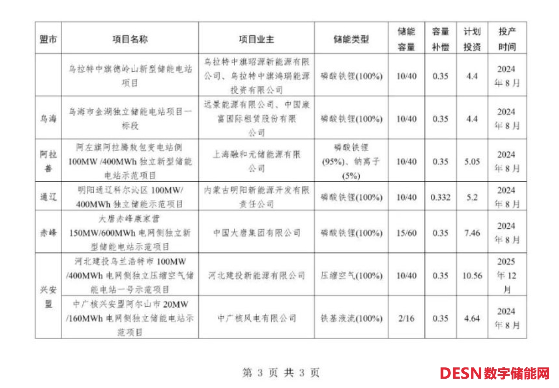 此外,《通知》還要求,鋰離子電池、鈉離子電池、液流電池等電化學(xué)儲能應(yīng)于2024年建成投產(chǎn),蒙西區(qū)域內(nèi)項目要力爭2024年8月底前建成投產(chǎn), 蒙東區(qū)域內(nèi)項目要力爭 2024年10月底前建成投產(chǎn);壓縮空氣等其他形式儲能應(yīng)于2025年建成投產(chǎn)。