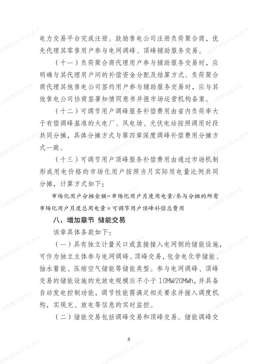 細則提出,儲能交易包括調(diào)峰交易和頂峰交易。儲能調(diào)峰交易指其儲能設(shè)施在棄風(fēng)棄光等調(diào)峰困難時段,通過吸收富余電能釋放新能源消納空間,獲取價格補償?shù)慕灰?。儲能頂峰交易指儲能設(shè)施在負荷高峰等電力供需緊張時段,通過釋放存儲電能緩解電力供應(yīng)壓力,獲取價格補償?shù)慕灰住?
