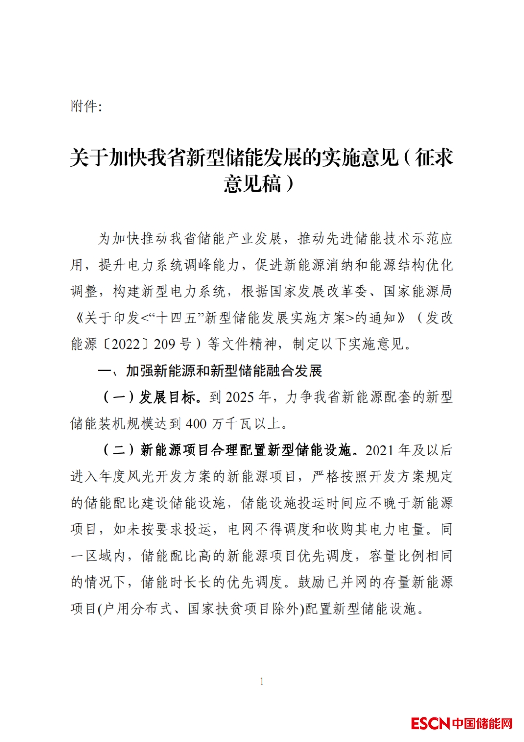 中國儲能網(wǎng)訊:4月25日,河南省發(fā)改委發(fā)布了關(guān)于征求《加快我省新型儲能發(fā)展的實(shí)施意見(征求意見稿)》意見的通知,意見反饋于4月28日截至。