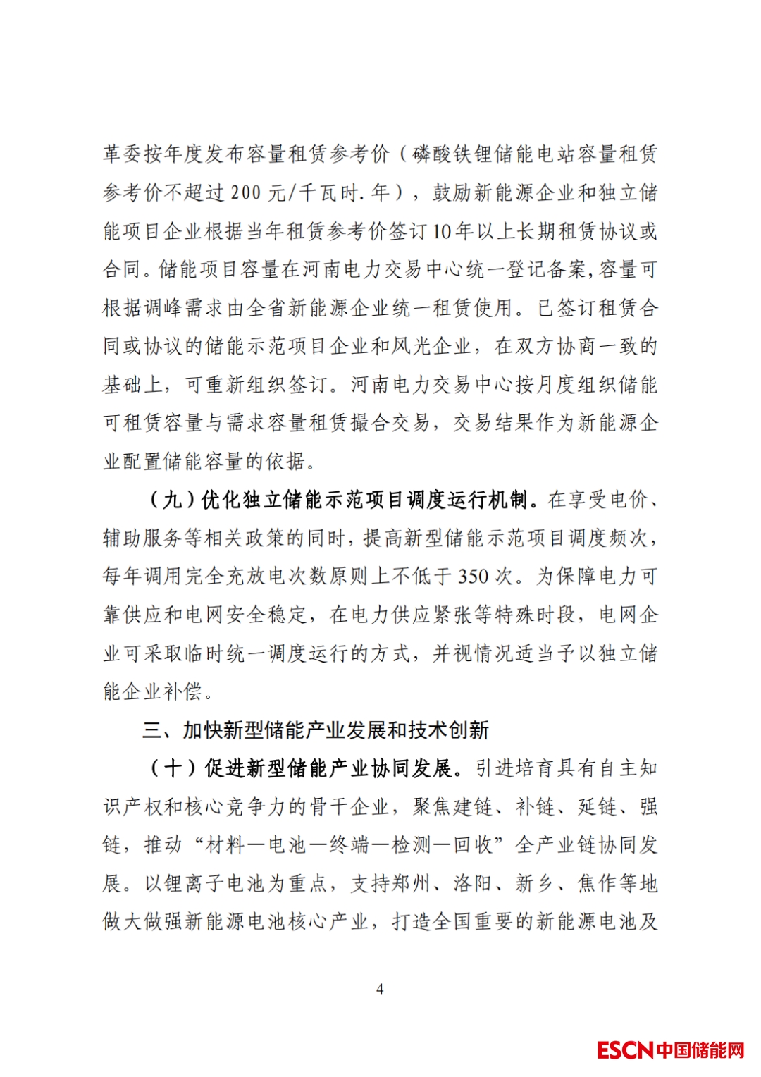 建立儲能容量租賃共享制度,租賃參考價(jià)200元/kWh·年,鼓勵儲能與新能源企業(yè)簽訂10年以上合同。