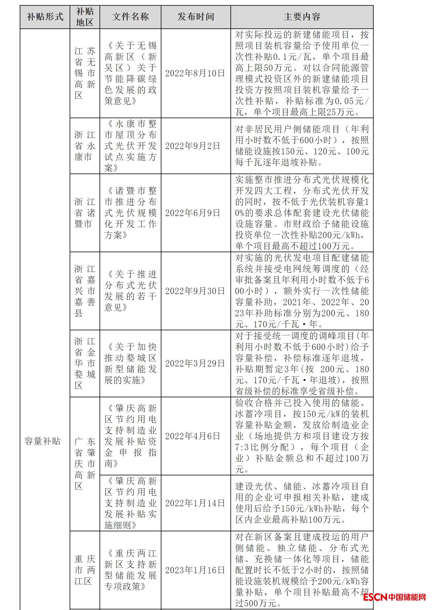 (七)部分地區(qū)關(guān)于儲能的地方性補貼政策