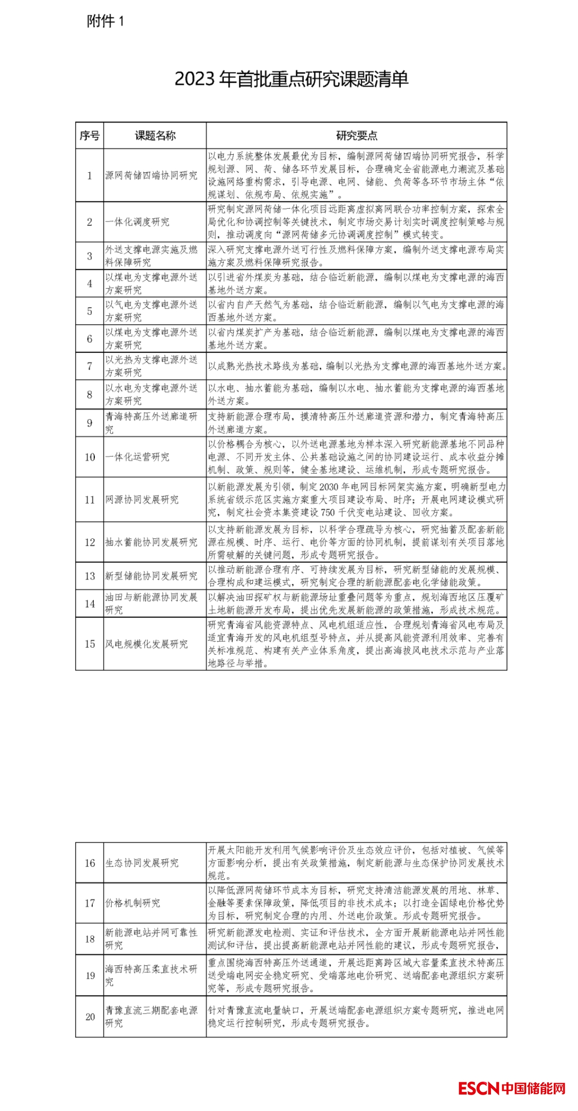 中國儲(chǔ)能網(wǎng)訊:近日,青海省發(fā)改委發(fā)布了《青海省能源局關(guān)于公開征集2023年首批重點(diǎn)研究課題承擔(dān)單位的公告》,并隨公告高公開了《2023年首批重點(diǎn)研究課題清單》。