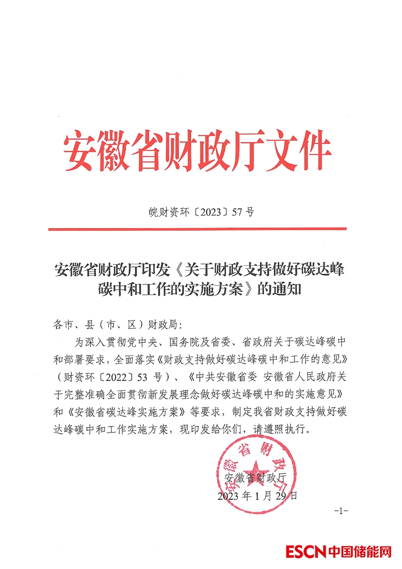 中國儲能網(wǎng)訊:近日,安徽省財政廳印發(fā)《關(guān)于財政支持碳達峰碳中和工作的實施方案》。《實施方案》指出,在重點支持方向上,將聚焦能源清潔低碳高效利用、重點行業(yè)領域綠色低碳轉(zhuǎn)型、綠色低碳科技創(chuàng)新體系建設、綠色低碳生活和資源節(jié)約利用、碳匯能力鞏固提升、健全綠色低碳市場體系等六個方面。