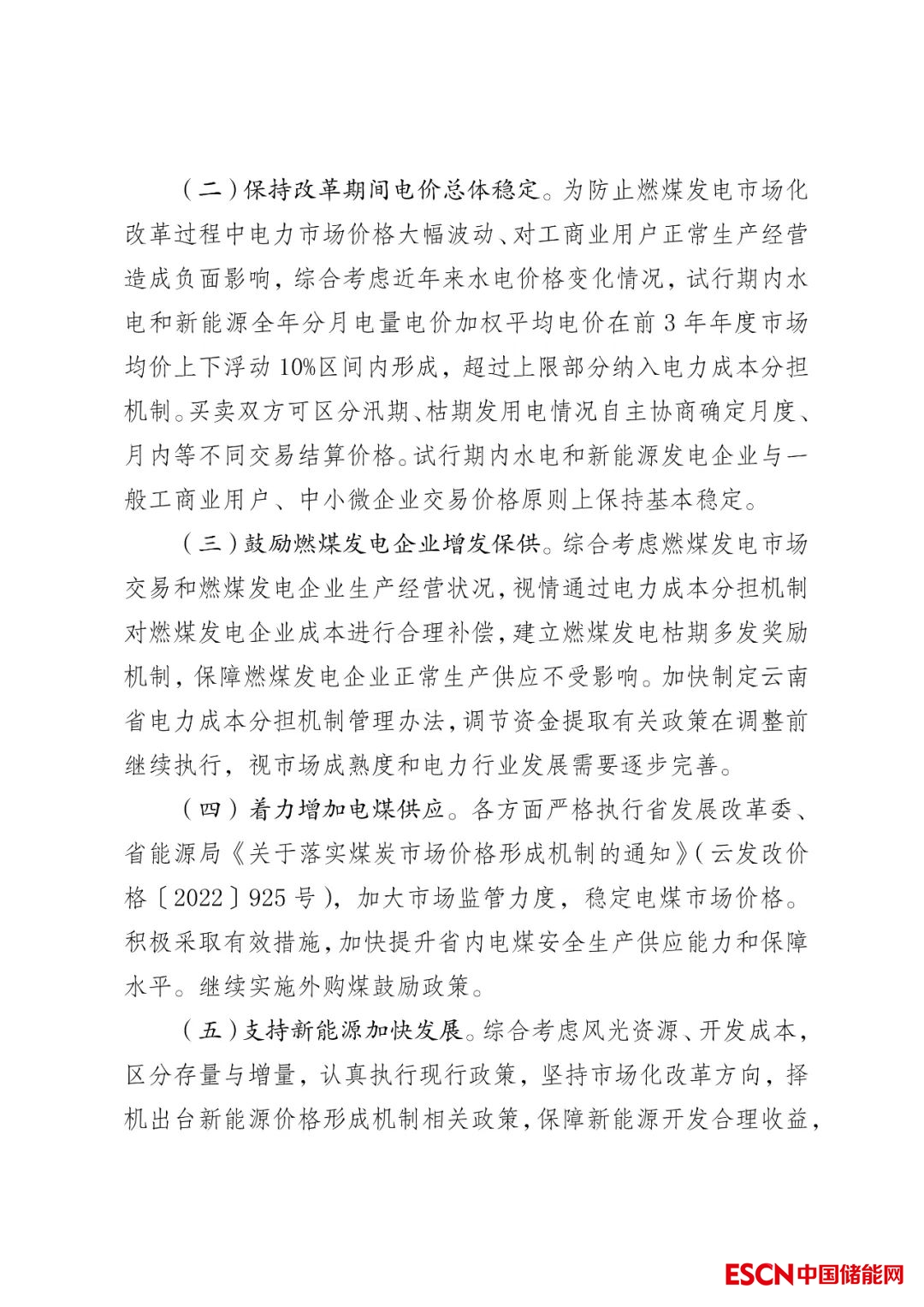 《實(shí)施方案》要求,強(qiáng)化保障措施,確保改革平穩(wěn)落地。一是確保居民、農(nóng)業(yè)用電價(jià)格穩(wěn)定。居民、農(nóng)業(yè)用電執(zhí)行目錄銷售電價(jià)政策,不參與分?jǐn)側(cè)济喊l(fā)電電量。二是保持改革期間電價(jià)總體穩(wěn)定。為防止燃煤發(fā)電市場(chǎng)化改革過程中電力市場(chǎng)價(jià)格大幅波動(dòng),制定了水電、新能源價(jià)格波動(dòng)區(qū)間保持價(jià)格穩(wěn)定。三是鼓勵(lì)燃煤發(fā)電企業(yè)增發(fā)保供。加快制定云南省電力成本分擔(dān)機(jī)制、燃煤發(fā)電枯期多發(fā)獎(jiǎng)勵(lì)機(jī)制,增加電煤供應(yīng),穩(wěn)定電煤市場(chǎng)價(jià)格。四是支持新能源加快發(fā)展。擇機(jī)出臺(tái)新能源價(jià)格形成機(jī)制相關(guān)政策,保障新能源開發(fā)合理收益。五是加強(qiáng)電力市場(chǎng)監(jiān)管。及時(shí)查處擾亂市場(chǎng)秩序行為,維護(hù)良好市場(chǎng)秩序,促進(jìn)市場(chǎng)交易價(jià)格合理形成。