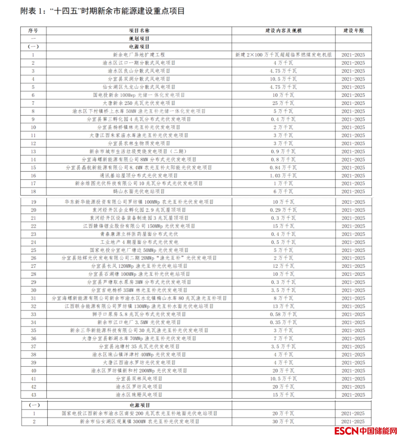 另外,規(guī)劃還對(duì)“十四五”時(shí)期新余市能源建設(shè)重點(diǎn)風(fēng)電、光伏項(xiàng)目進(jìn)行公示,其中,風(fēng)電、光伏項(xiàng)目規(guī)劃項(xiàng)目40項(xiàng),規(guī)??傆?jì)2472.9MW,在規(guī)劃項(xiàng)目中,風(fēng)電項(xiàng)目7個(gè),規(guī)??傆?jì)695MW,光伏項(xiàng)目33個(gè),規(guī)??傆?jì)1777.9MW。儲(chǔ)備項(xiàng)目2項(xiàng)目,規(guī)??傆?jì)500MW,均為光伏項(xiàng)目。項(xiàng)目建設(shè)年限為2021-2025年。具體如下: