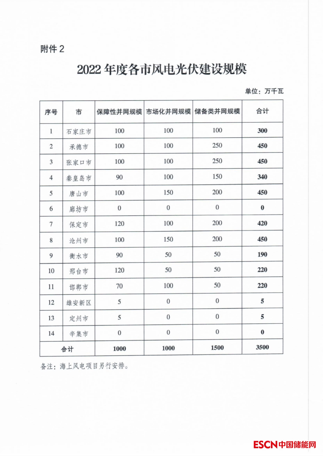 中國(guó)儲(chǔ)能網(wǎng)訊:11月4日,河北省發(fā)改委正式下發(fā)《關(guān)于做好2022年風(fēng)電、光伏發(fā)電項(xiàng)目申報(bào)工作的通知》,各市風(fēng)光規(guī)模總計(jì)35GW,相比此前河北省發(fā)改委下發(fā)的《關(guān)于做好2022年風(fēng)電、光伏發(fā)電開發(fā)建設(shè)有關(guān)事項(xiàng)的通知》來(lái)看,保障性項(xiàng)目增加5GW到10GW,市場(chǎng)化以及儲(chǔ)備項(xiàng)目仍分別為10GW、15GW。