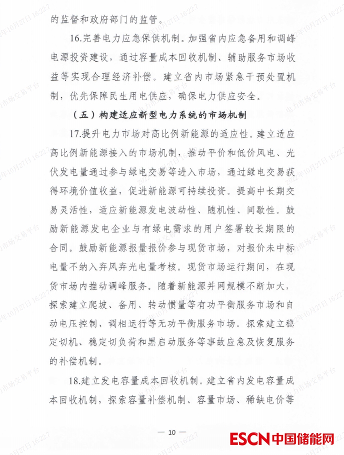 文件提出,建立省內(nèi)發(fā)電容量成本回收機(jī)制,探索容量補(bǔ)償機(jī)制、容量市場、稀缺電價等多種方式,保障電源固定成本回收和長期電力供應(yīng)安全。通過輔助服務(wù)市場收益,引導(dǎo)抽水蓄能、電化學(xué)儲能、物理儲能、儲熱等調(diào)節(jié)電源投資建設(shè)。