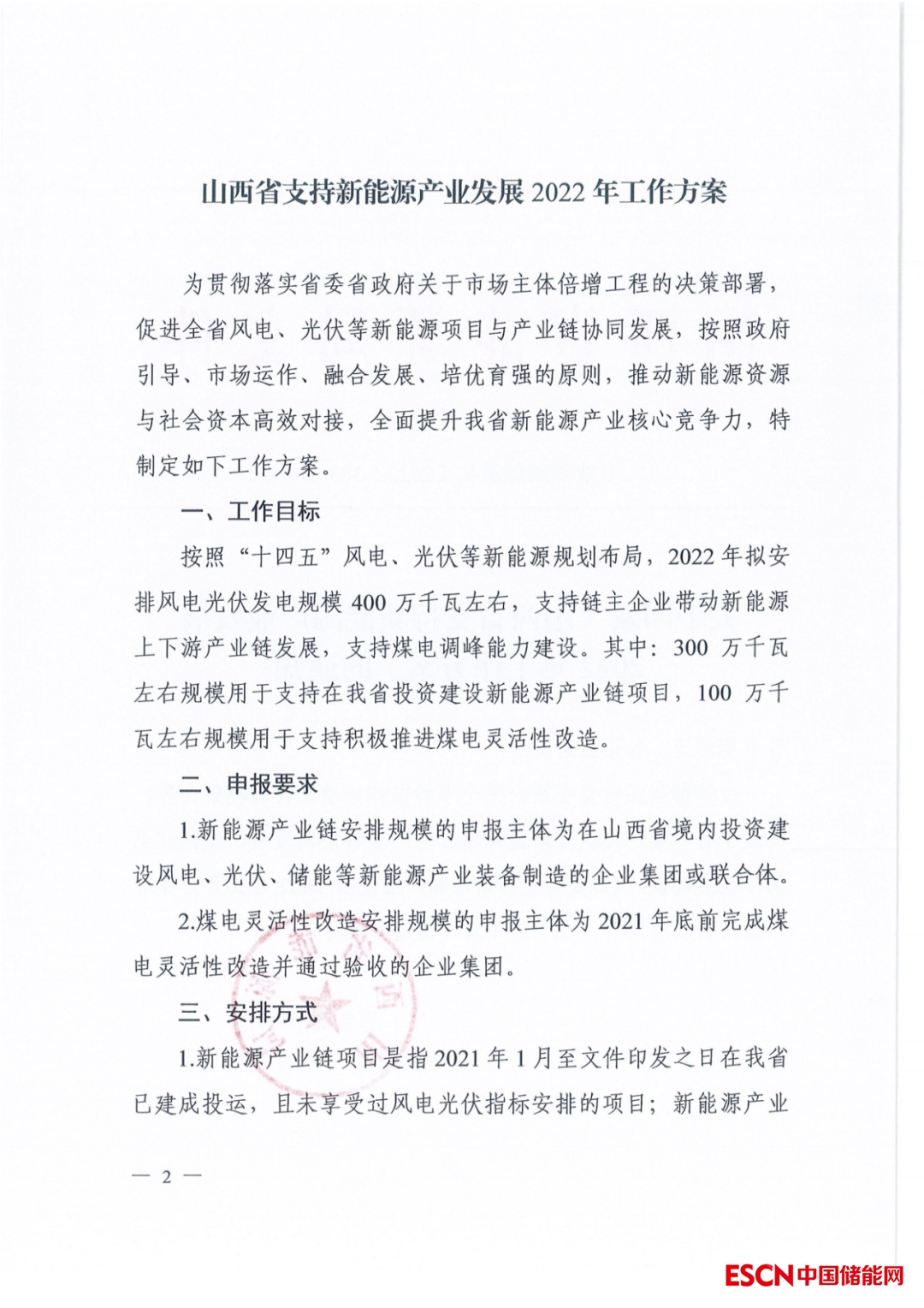 中國儲能網(wǎng)訊:10月12日,山西省能源局印發(fā)《山西省支持新能源產(chǎn)業(yè)發(fā)展2022年工作方案》,方案提出:2022年擬單獨(dú)安排400萬千瓦左右風(fēng)電光伏發(fā)電規(guī)模支持兩類項(xiàng)目,其中