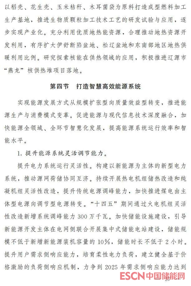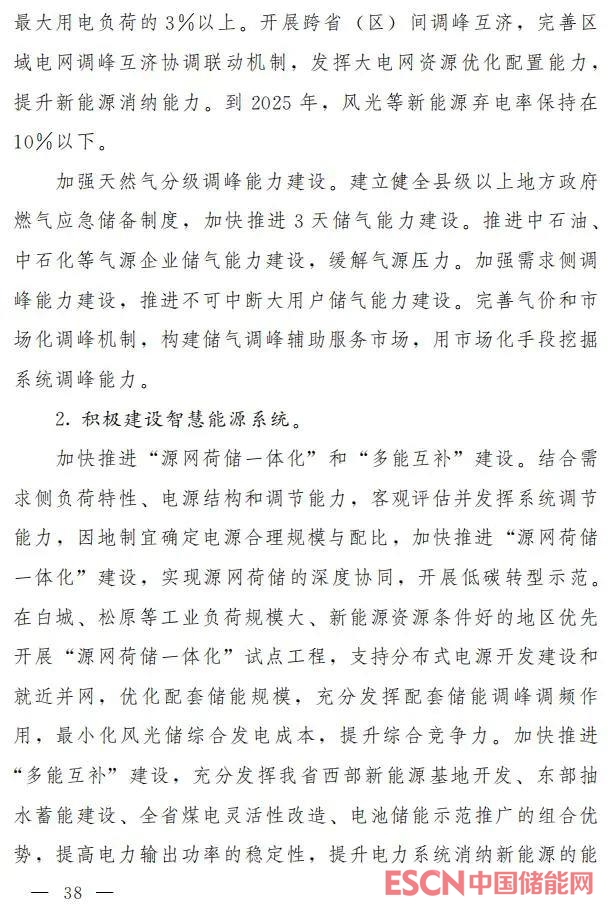 中國儲能網(wǎng)訊:8月24日,吉林省人民政府辦公廳發(fā)布關(guān)于印發(fā)《吉林省能源發(fā)展“十四五”規(guī)劃》的通知。規(guī)劃中提出,加快儲能設(shè)施建設(shè),引導(dǎo)新能源開發(fā)主體在電網(wǎng)側(cè)聯(lián)合開展集中式儲能電站建設(shè),儲能規(guī)模不低于新增新能源裝機容量的10%,儲能時長不低于2小時。提升用戶需求側(cè)響應(yīng)能力,培育柔性電力負荷,建立健全基于價格激勵的負荷側(cè)響應(yīng)機制,力爭到2025年需求側(cè)響應(yīng)能力達到最大用電負荷的3%以上。開展跨省 (區(qū))間調(diào)峰互濟,完善區(qū)域電網(wǎng)調(diào)峰互濟協(xié)調(diào)聯(lián)動機制,發(fā)揮大電網(wǎng)資源優(yōu)化配置能力, 提升新能源消納能力。到2025年,風(fēng)光等新能源棄電率保持在10%以下。