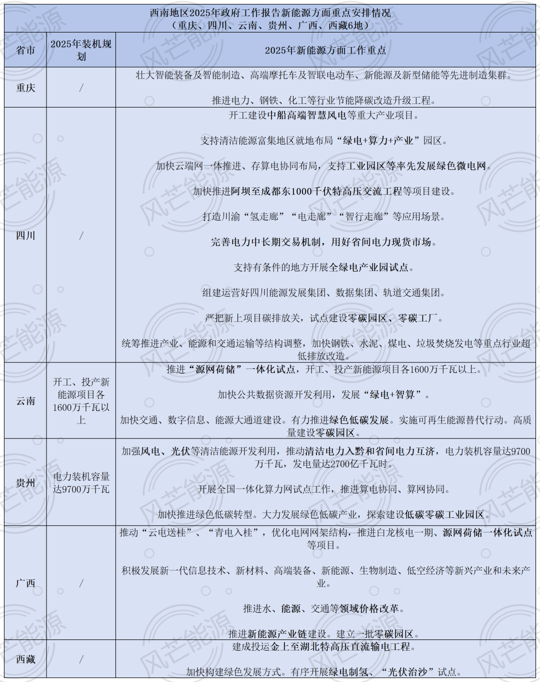 西南地區(qū)統(tǒng)計(jì)為重慶、四川、云南、貴州、廣西、西藏6地。其中四川、云南、貴州3地明確,推進(jìn)“算電協(xié)同”,發(fā)展“綠電+智算”。