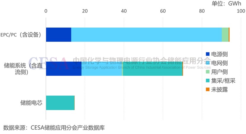 圖 2024年各應(yīng)用場景儲能采招落地容量及占比