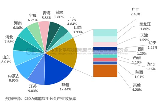 其中,新疆儲能采招落地規(guī)模達(dá)6.48GW/23.42GWh,容量規(guī)模占全國項目類采招落地總規(guī)模的17.44%,采購金額達(dá)246.43億元,規(guī)模和金額均居全國首位,新疆近三分之二為電源側(cè)項目。