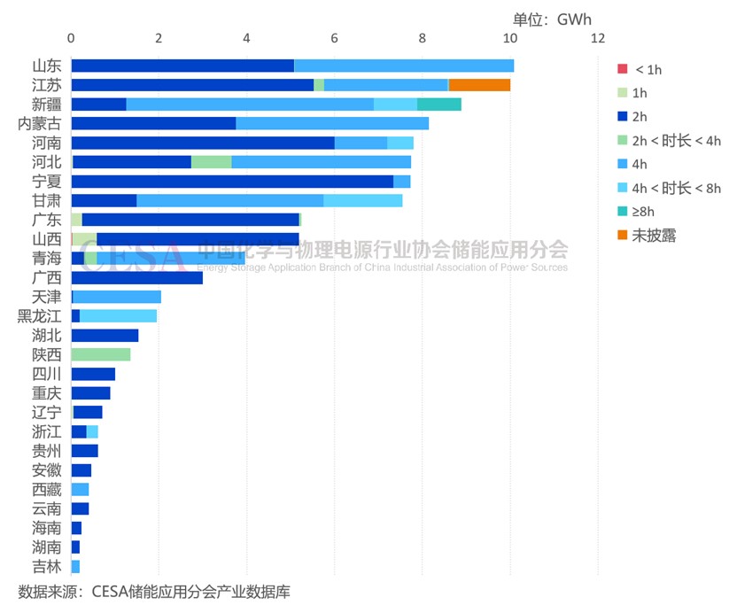 圖 2024年不同時長儲能項目采招落地規(guī)模占比