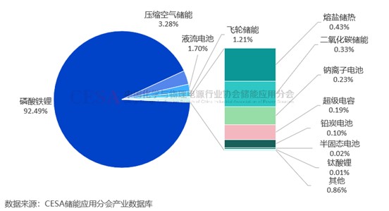 圖 2024年各技術(shù)路線儲能項目采招落地規(guī)模占比