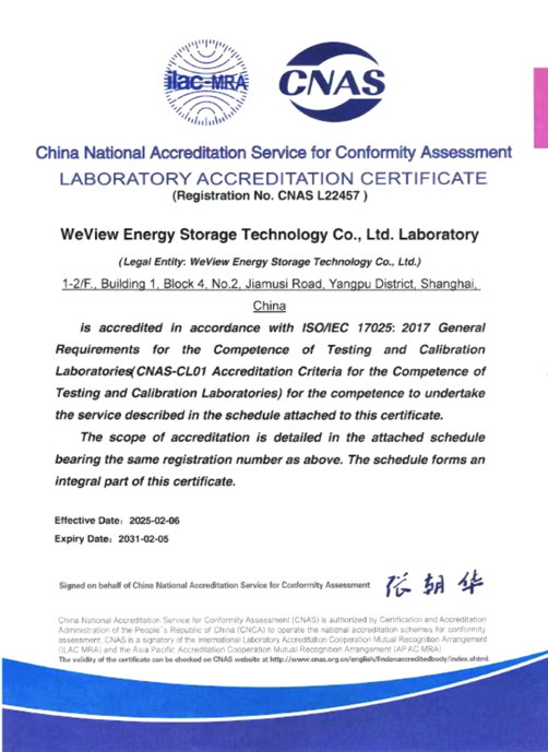 中國儲能網(wǎng)訊:近日,緯景儲能實驗室成功取得中國合格評定國家認(rèn)可委員會(CNAS)頒發(fā)的檢測實驗室認(rèn)可證書。這標(biāo)志著其在鋅鐵液流電池領(lǐng)域,包括材料、零部件及系統(tǒng)一體化方面的試驗驗證能力均已達(dá)到國際標(biāo)準(zhǔn),為全球鋅鐵液流電池技術(shù)的發(fā)展樹立了新標(biāo)桿。