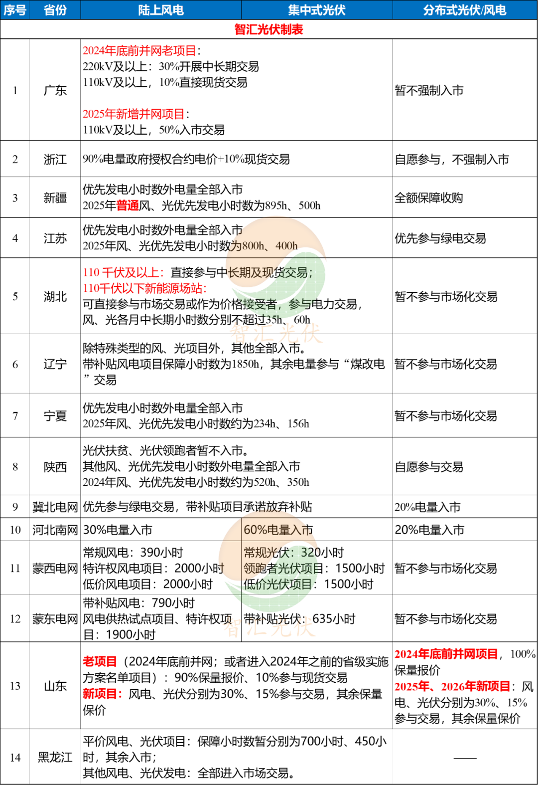 表:十四地2025年新能源項目參與電力交易原則