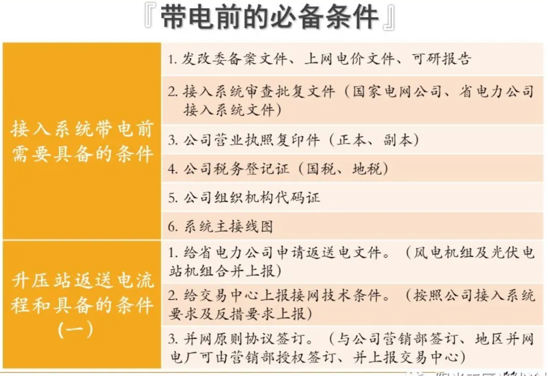 在文章《光伏電站:開發(fā)、建設(shè)、并網(wǎng)進(jìn)度與手續(xù)詳解!》中詳細(xì)介紹了項目并網(wǎng)前要做的準(zhǔn)備,如下圖所示。
